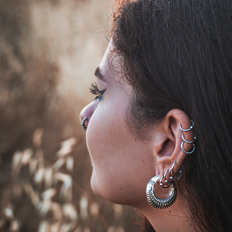 Minimum hole : 6mm. Treat yourself to these wonderful hand cast 'Kishtwa' silver brass ear weights. They are are suitable for 6mm lobes and above. They have a hinge which clicks shut for easy wearing. Sold individually so the price is for a single item not a pair.