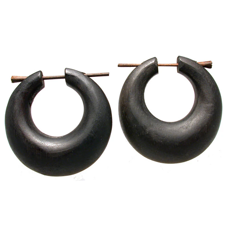 Tribal Wooden Hoop Earrings in Dark Wood