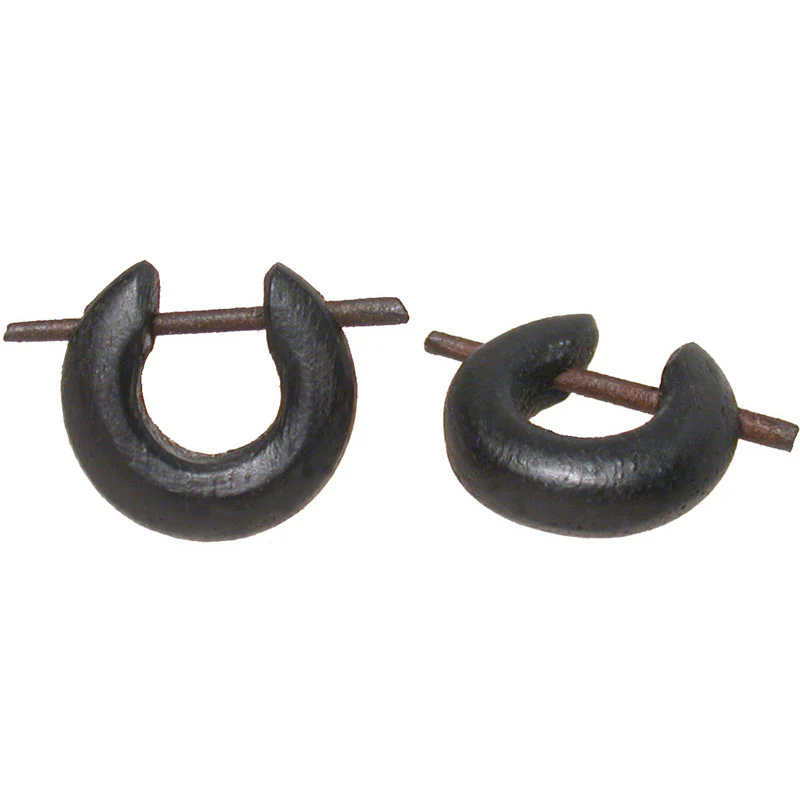 Small wooden hoop earrings, secured with a stick. These hand carved tribal earrings are about 15mm across. This item does come as a pair!